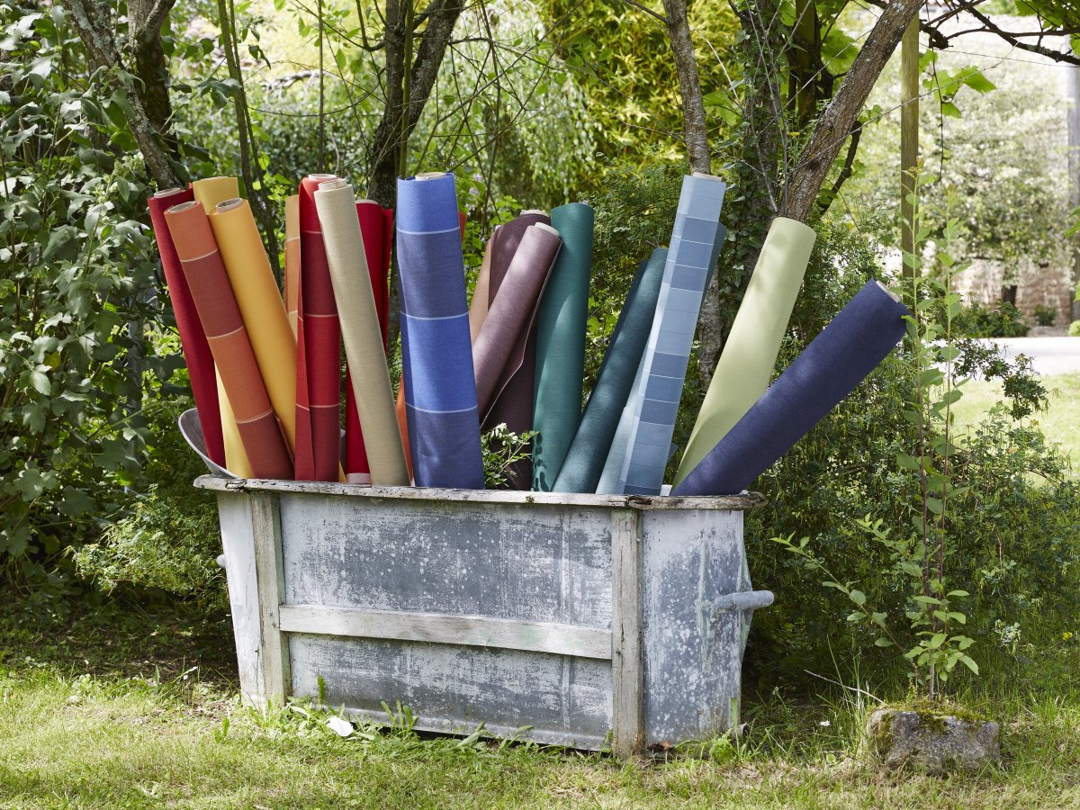 Die PVC Stoffe sind vom Charakter anders als alle anderen Stoff. PVC lässt kein Licht und keine Luft durch das Gewebe. Es schützt zu 100% den Nutzer vor Sonne, Wind und Regen. Der Stoff ist glatt und leicht glänzend, es gibt verschiedene uni und gestreifte Dessins.