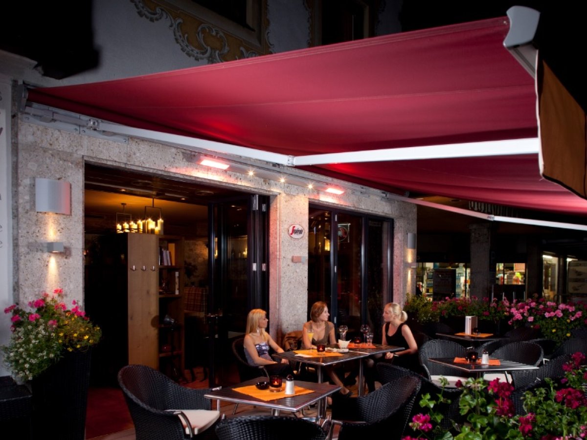 In der Gastronomie ist Wetter- und Sonnenschutz nicht weg zu denken, es dient nicht nur dem Zweck, sondern bringt den besonderen Flair in die gastronomische Einrichtung. Mit einer Außenterrasse erweitern Sie Ihr Geschäft und jeder Quadratmeter ist kostbar, denn jeder nicht genutzter Platz ist verschenktes Geld! Nutzen Sie jetzt Ihre ganze Terrasse mit einer Pergola, Markise, Sonnenschirm... selbst bei Regenschauern sitzen Ihre Gäste im trocknen und können Ihre Produkte weiter genießen.