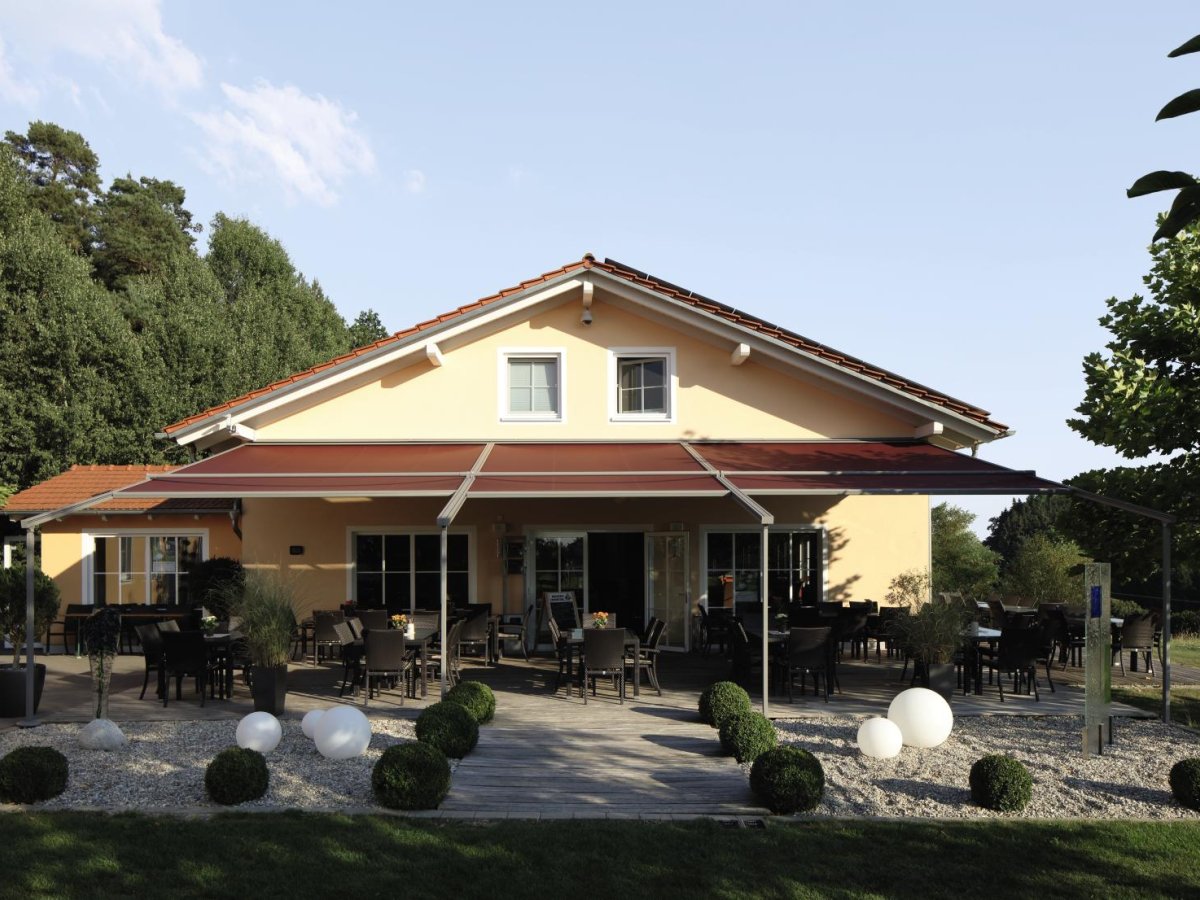 Mit der richtigen Sonnenschutzanlage auf Ihrer Außenterrasse fühlt sich Ihr Gast gleich viel wohler, denn am Abend kühlt die Luft ab und unsere Produkte speichern die warme Luft unter der Anlage. Unsere Pergolen sind für die Gastronomie wie geschaffen, diese lassen sich modular anbauen und bieten mit dem PVC Dach zu 100% Schutz vor Regen und Wind. Das Sonnensegel bringt den mediterranen Flair und Leichtigkeit auf Ihre Terrasse.