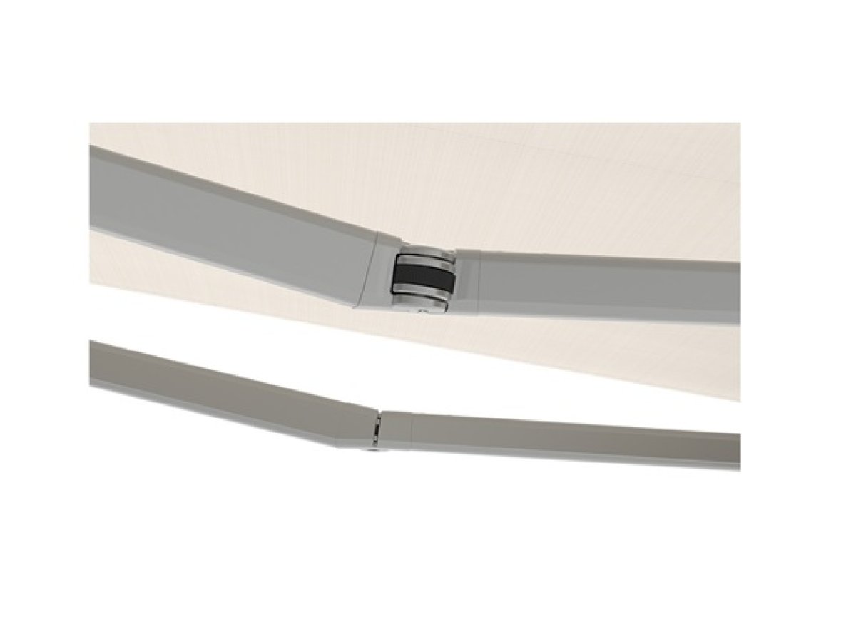 Das verdeckt liegende Dyneema® Zugband überträgt die Federkraft durch geräuschgedämpfte Spezialfedern auf Gelenkarm und Markisenbespannung: Die Dyneema®-Faser ist sehr lange haltbar und hat eine hohe Beständigkeit gegen Abrieb, Feuchtigkeit, UV-Strahlen und Chemikalien. Damit ist die Dyneema®-Faser auf die Masse bezogen: