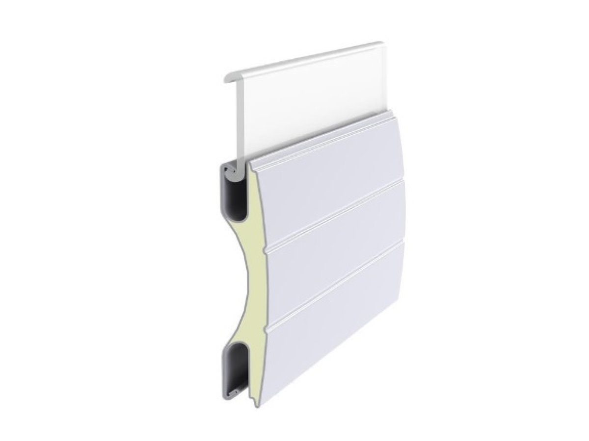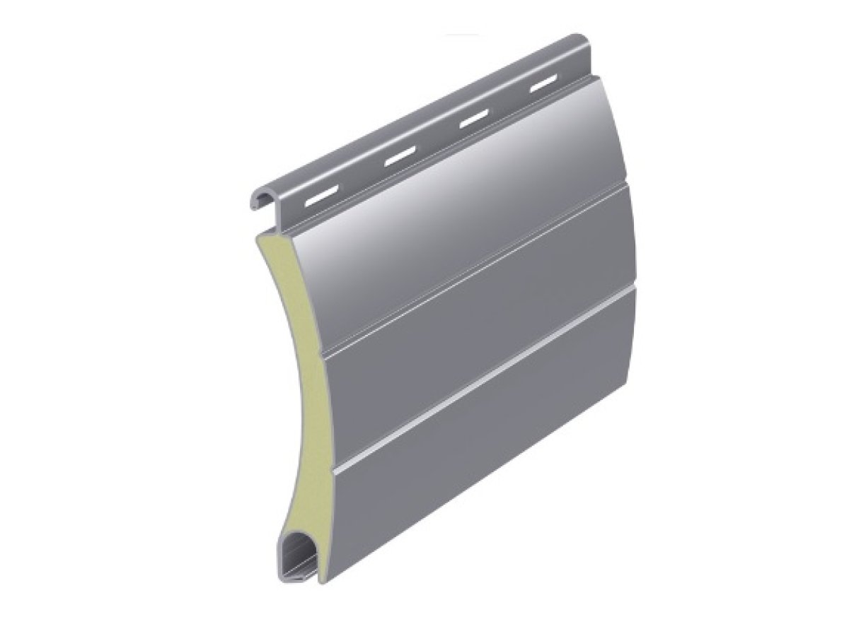 Das doppelwandige, rollgeformte Aluminium-Rollladenprofil mit Lichtschlitzen ist im Hohlraum mit Polyurethan ausgeschäumt. Die Profile sind dicklackbeschichtet, der Behang ist über die gesamte Höhe arretiert.