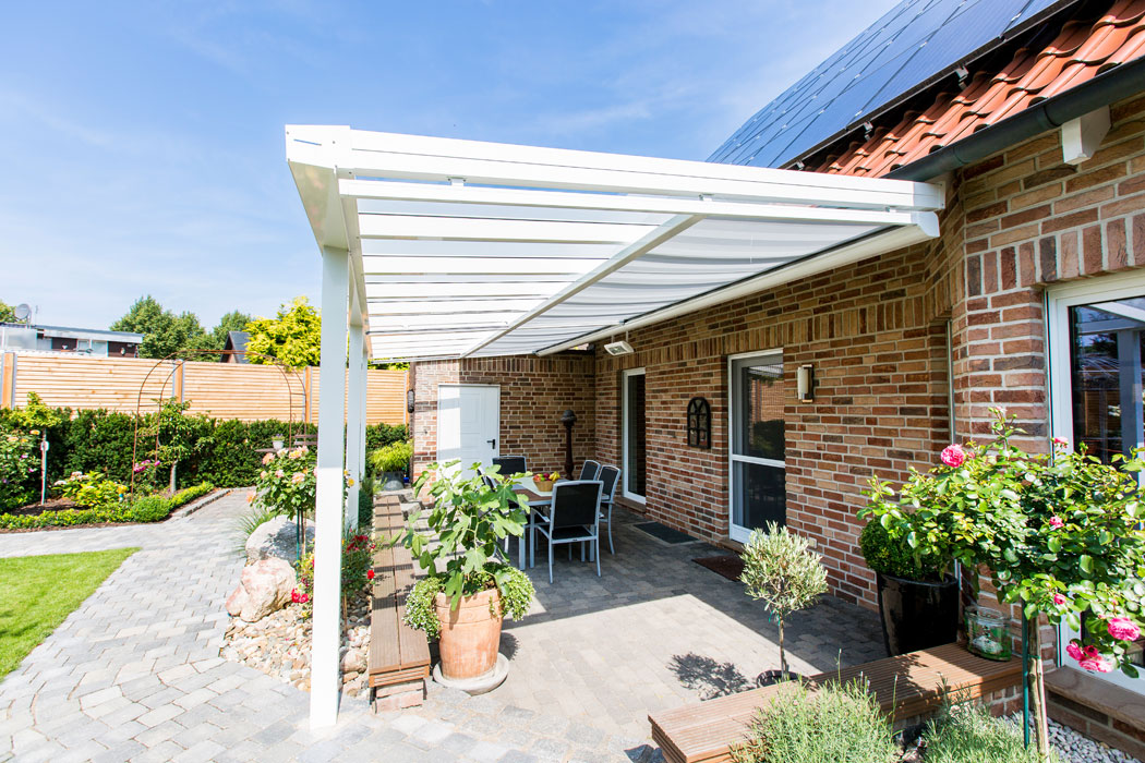 Die klassische Anwendung von einer Unterglasmarkise ist unter einem Terrassendach aus Glas oder Polycarbonat Stegplatten. Ein Terrassendach aus Glas kann im Sommer nicht mehr ohne einen optimalen Sonnenschutz genutzt werden, da die Sonnenstrahlen durch das Glas verstärkt werden und sich extreme Hitze darunter bildet. Die Unterglasmarkise eignet sich hervorragend als Sonnenschutz, so lassen sich die Sommertage wieder entspannt im Freien genießen.