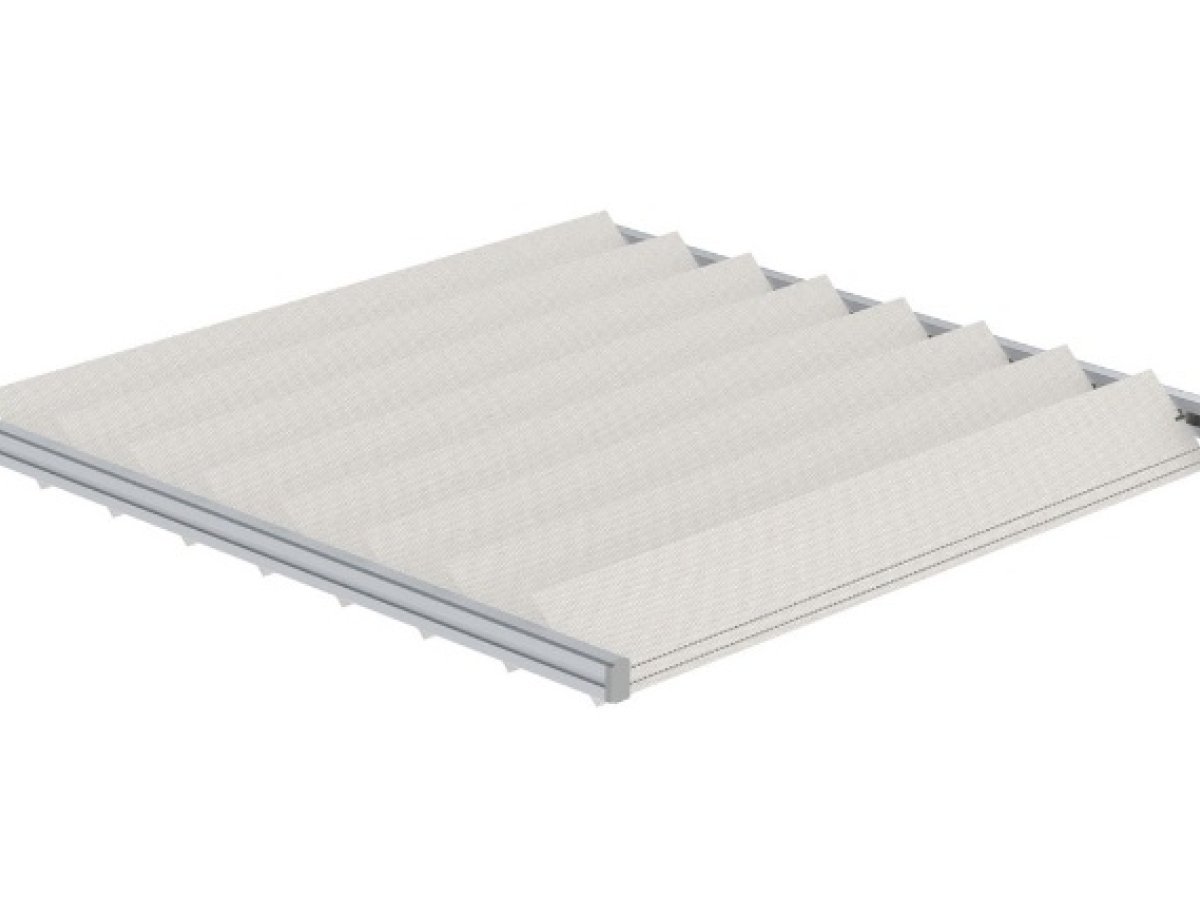 Waagrecht montierte Plafond-Anlage mit federgespannten Lamellen zwischen 2 Schienen.