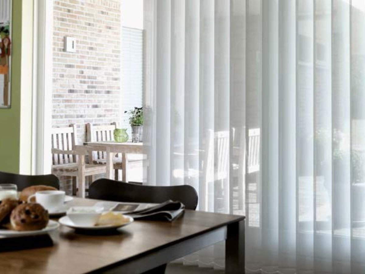 Vertikaljalousien bezaubern mehr als jede andere Beschattungsvariante durch ein raffiniertes Spiel mit dem Tageslicht, das Räume in Sekunden verändern kann. In welchem Winkel die Bänder stehen, wie sie sich überlagern, öffnen oder schließen – all das offenbart den Zauber des Lichts, als Gestaltungsmittel und Grundelement für unser Wohlbefinden in Wohn- und Arbeitsräumen.