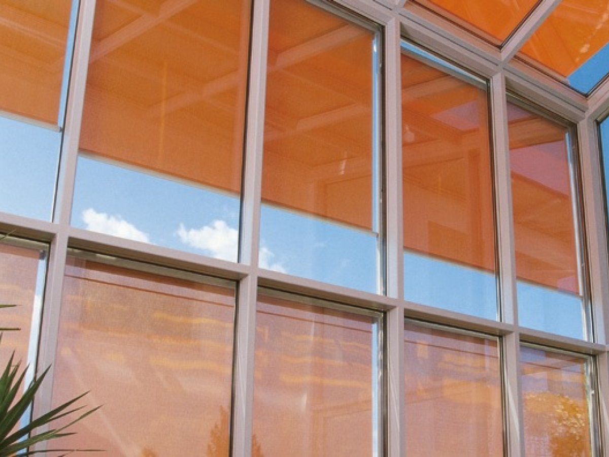 Beschattung mit Gegenzug zur Montage auf schräge Verglasungen. Ideal für den Schutz bei Wintergärten, Dachver-glasungen und Pergola-Konstruktionen mit schrägen Seiten (35°-74°).