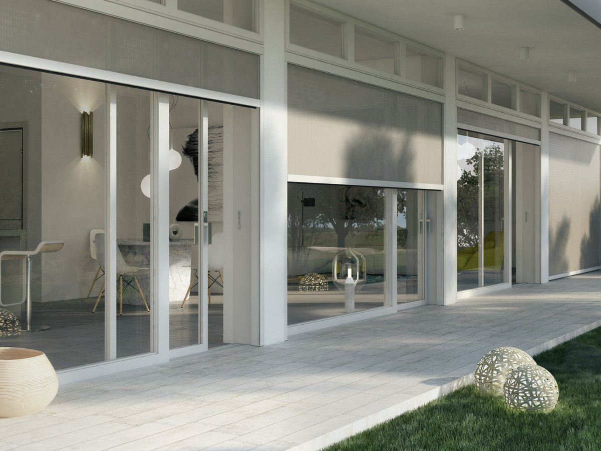 Der Zip - Textilscreen ist eine moderne Fensterbeschattung für Wohn- und Geschäftshäuser, welcher eine stilvollen Blick auf die Fassade vermittelt. Durch das clevere Führungsschienen - System bleibt der Behang über die ganze Fläche straff gespannt und hat so eine hohe Windwiderstandsfähigkeit. Der Textilscreen kann sich ganz unscheinbar in die Fassade integieren oder durch die große Farbvielfalt Aktzente setzen.